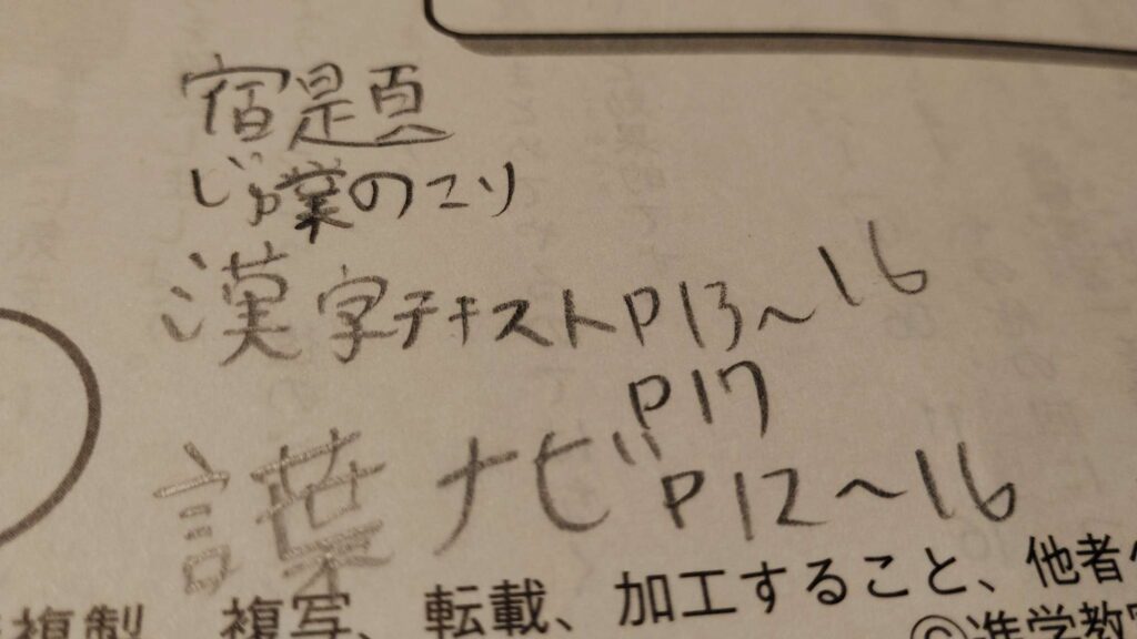 宿題をメモしてかえってきました。