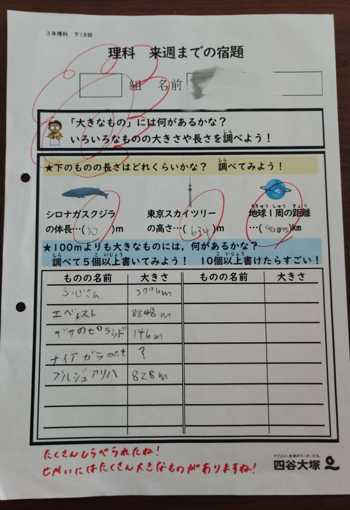 四谷大塚のホームワークは、「完全に子ども任せ」だと難しいです。